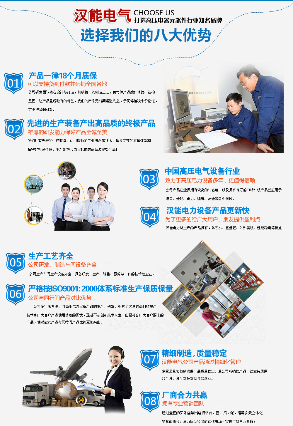 浙江漢能電氣有限公司坐落于中國(guó)電器之“柳市”,公司是一家長(zhǎng)期致力于高壓電力設(shè)備等產(chǎn)品領(lǐng)域研發(fā)、生產(chǎn)、銷(xiāo)售與服務(wù)為一體的中型企業(yè),是全國(guó)電力設(shè)備解決方案供應(yīng)商。