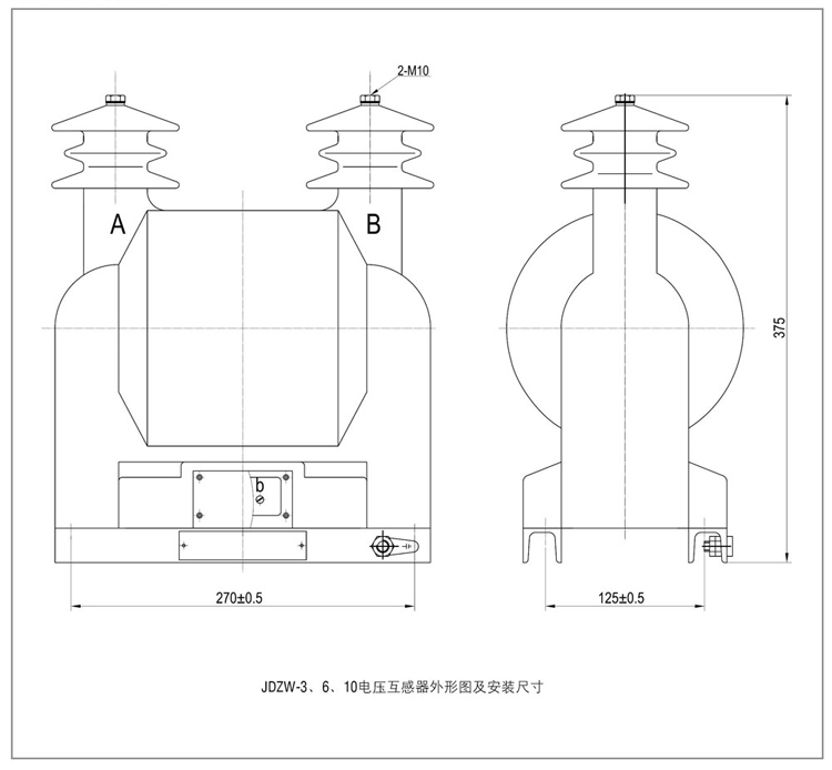 JDZW-3、6、10型電壓互感器適用于戶(hù)外、額定頻率為50Hz或60Hz、額定電壓為10kV的交流電力系統(tǒng)中,作電能計(jì)量、電壓監(jiān)測(cè)和繼電保護(hù)用。 產(chǎn)品執(zhí)行標(biāo)準(zhǔn)為GB 1207《電壓互感器》。 |