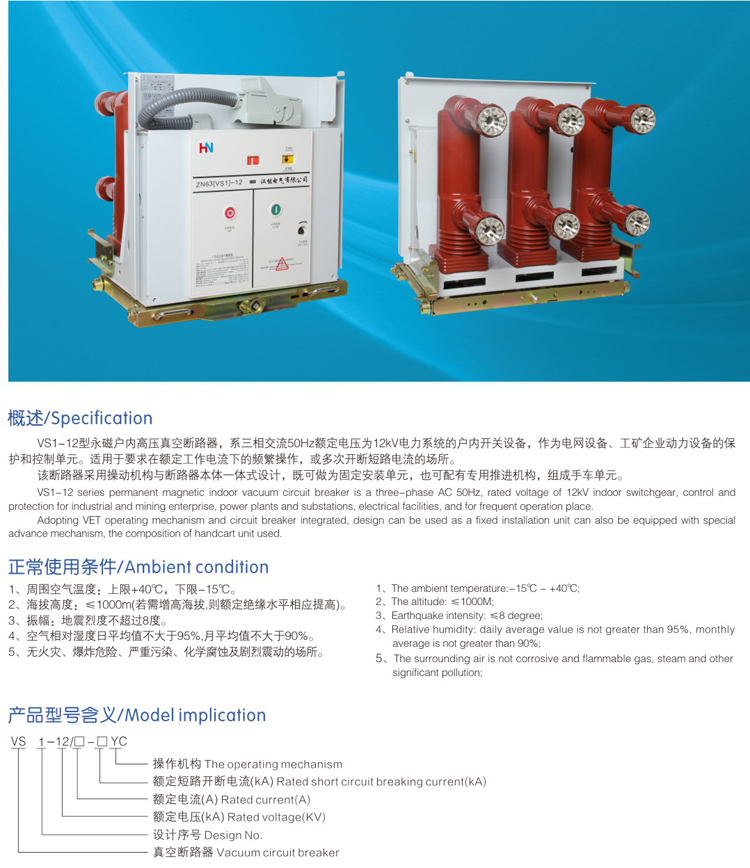 ZN63(VS1)-12戶內(nèi)真空斷路器