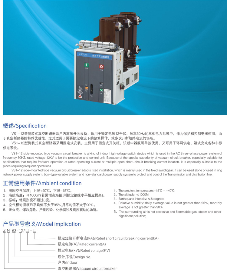 ZN63(VBM7)-12側(cè)裝式戶內(nèi)真空斷路器