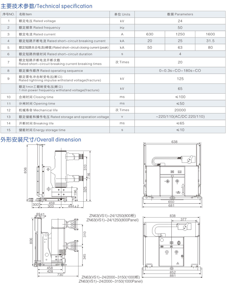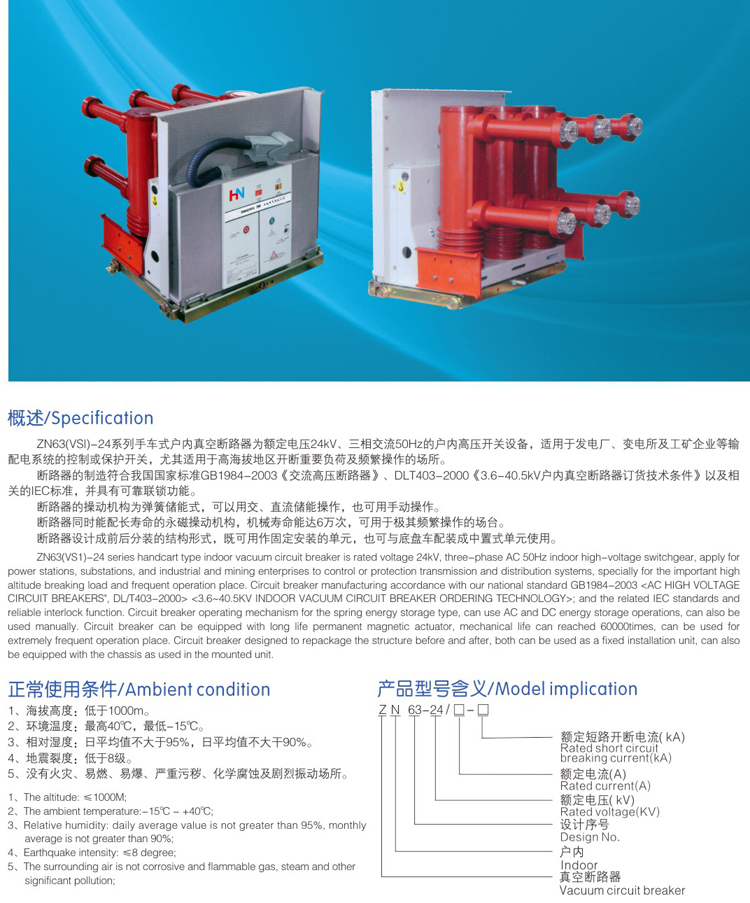 ZN63(VS1)-24戶內(nèi)真空斷路器