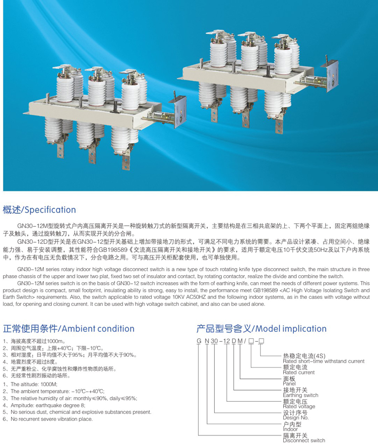 GN30-12M戶內(nèi)旋轉(zhuǎn)式隔離開(kāi)關(guān)