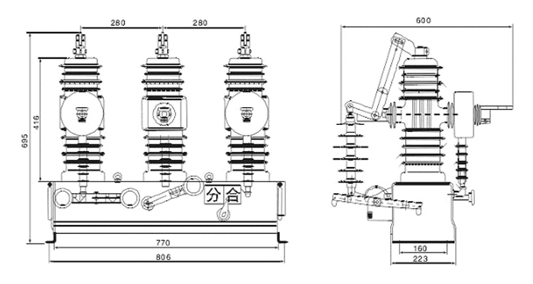 6.操動(dòng)機(jī)構(gòu)密封在開(kāi)關(guān)箱體內(nèi)部,可以有效地避免開(kāi)關(guān)因長(zhǎng)期戶外環(huán)境下面引起的機(jī)構(gòu)銹蝕。